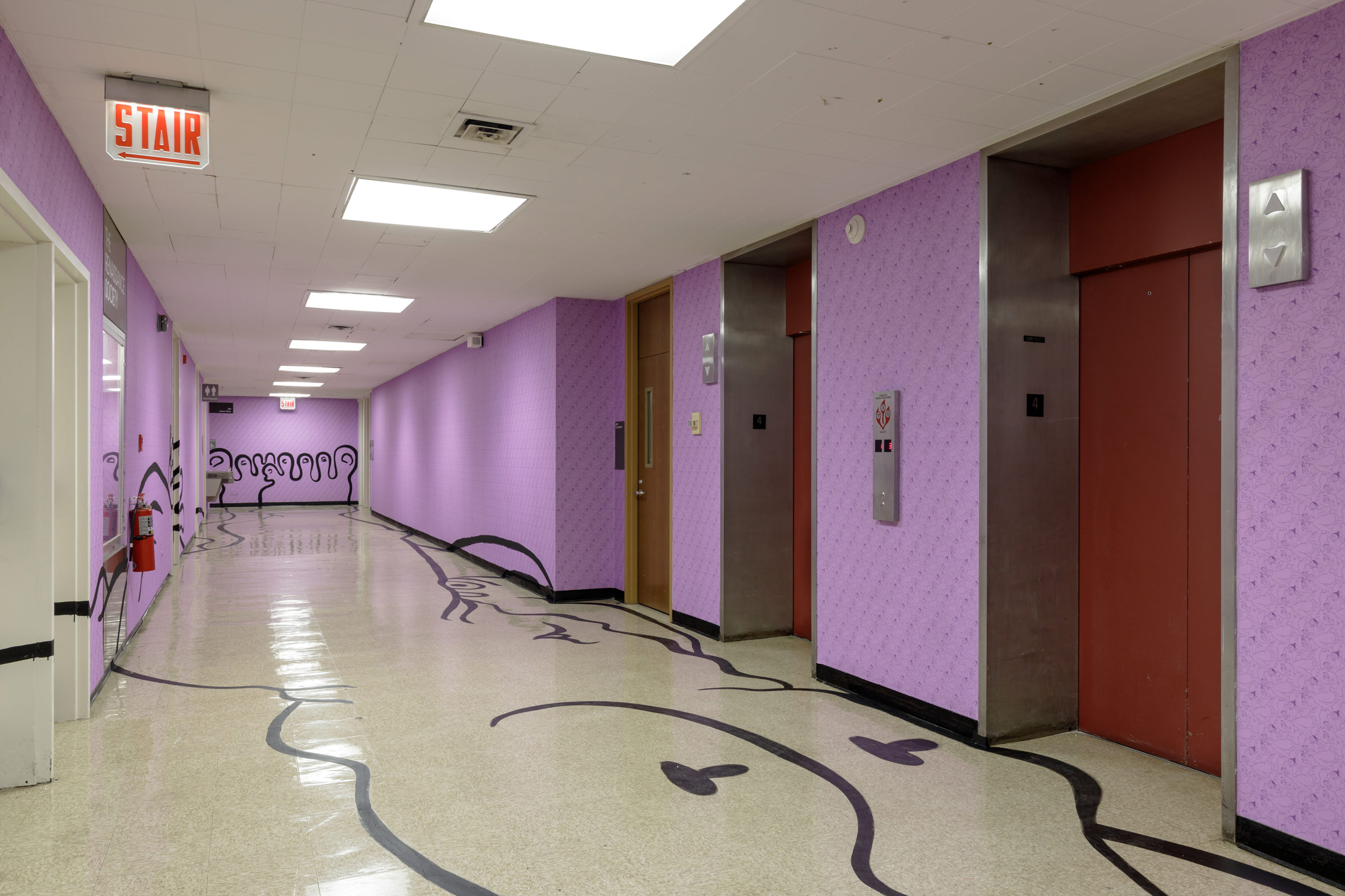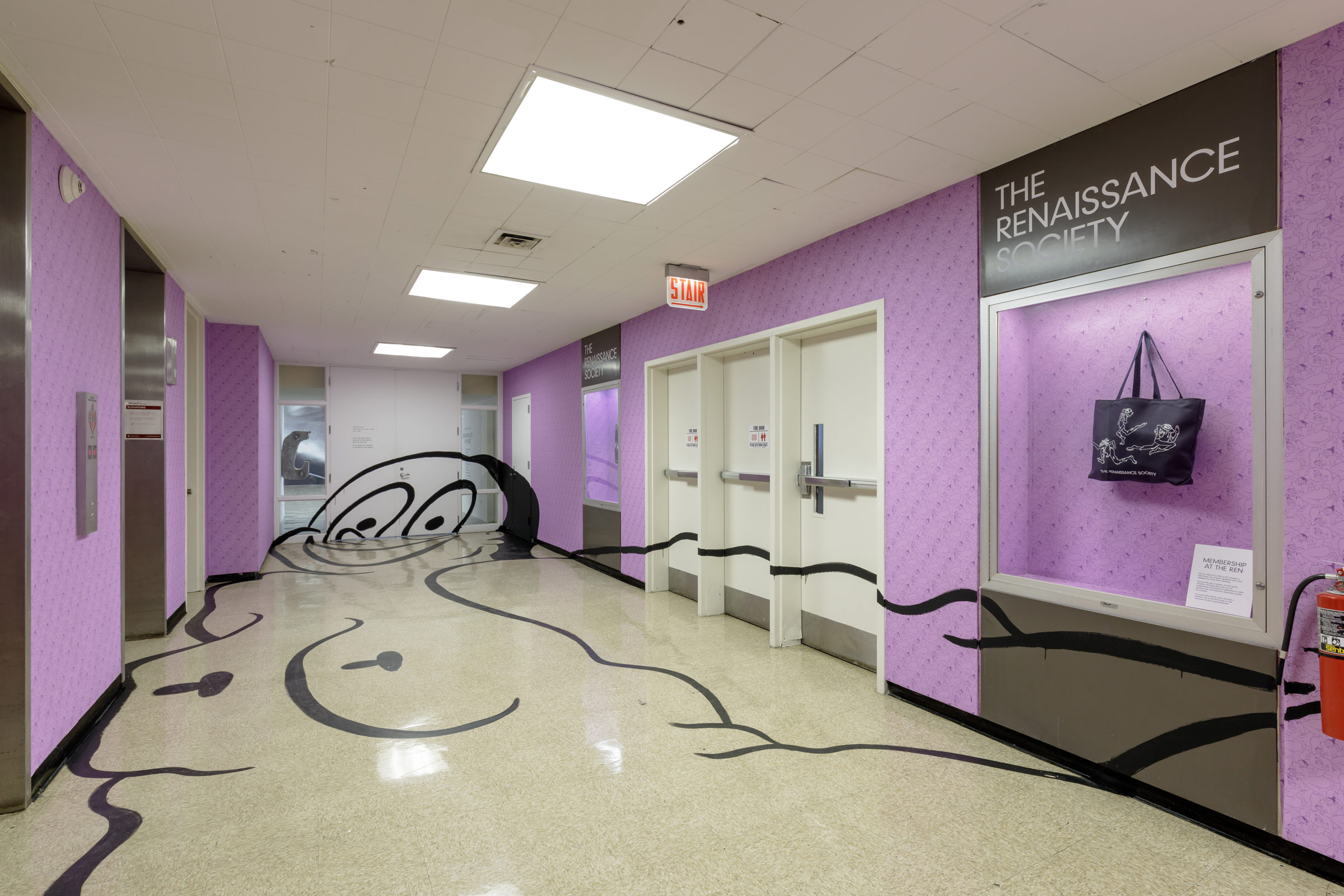 Ebecho Muslimova, Fatebe Big Squeeze at Cobb Hall, Installation view of Smashing Into My Heart, The Renaissance Society, Chicago, IL, 2021. Photo courtesy Useful Art Services.